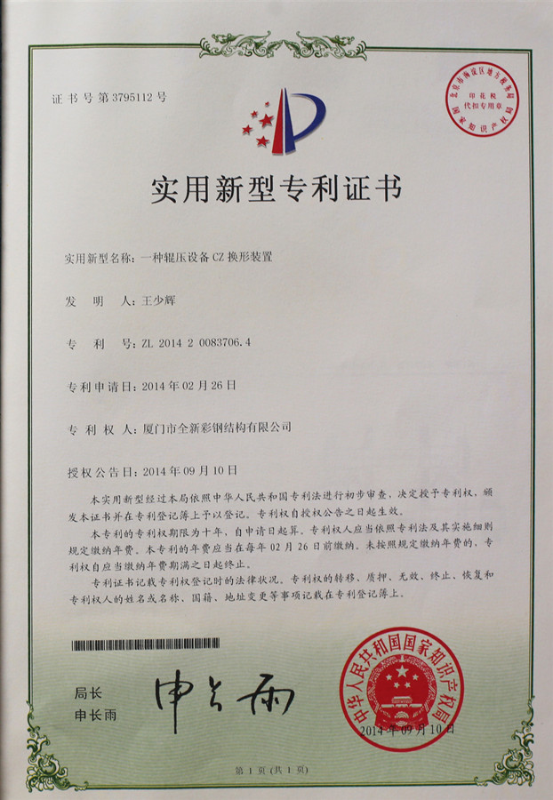 Octrooicertificaat van CZ-wisselrolvormmachine